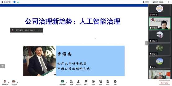 2024年1月9日,我院特别邀请南开大学讲席教授、中国公司治理研究院院长、《中国大百科全书·工商管理卷》主编、我院特聘教授李维安以线上交流的形式开展了主题为《公司治理新趋势:人工智能治理》的学术讲座。此次讲座由beat365英国正版唯一网址管理学院、高校风险预警防控研发中心、民族地区数字化发展与治理研究中心、民族院校会计学专业虚拟教研室联合举办。管理学院教师以及研究生共100余人参加了本次讲座,讲座由翟华云院长主持。