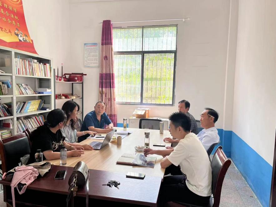 (图为课题组卢世菊教授与李海娥教授与瓦屋场村村委会人员研讨会场景)