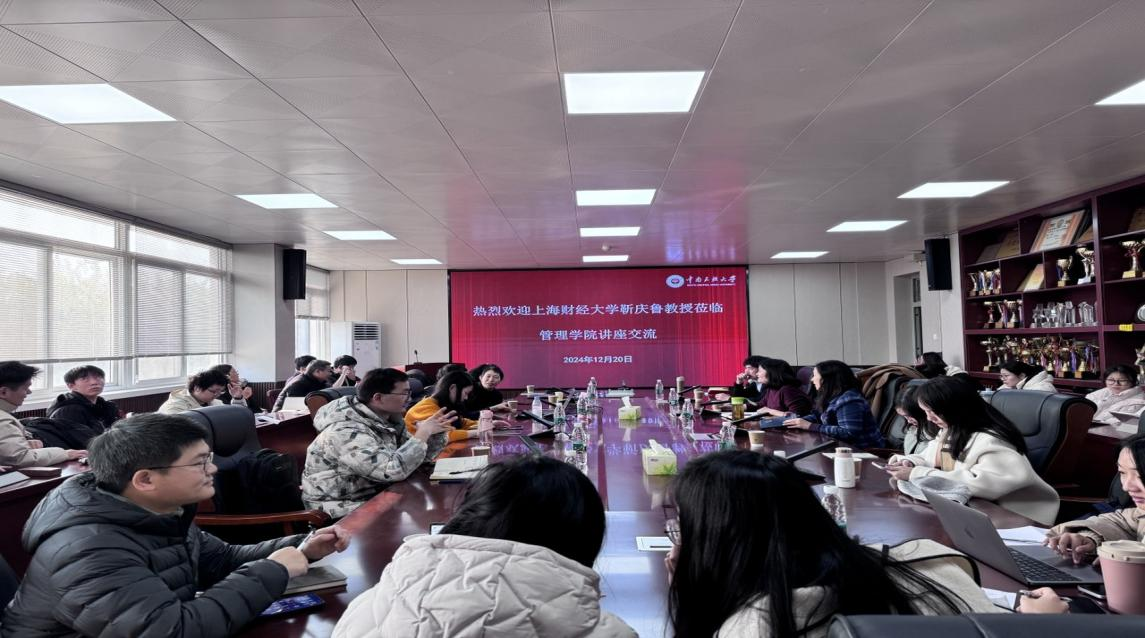 2024年12月20日下午,现任上海财经大学会计学院院长,教授、博士生导师,兼任第九届国家自然科学基金委管理科学部专家咨询委员会委员,全国MPAcc教育指导委员会委员,中国会计学会会计教育分会会长,教育部首批全国高校黄大年式教学团队负责人,教育部首批哲学社会科学实验室(培育)负责人,国家杰出青年科学基金获得者,教育部长江学者特聘教授,国家万人计划哲学社会科学领军人才;入选国家百千万人才工程、财政部会计名家培养工程、中宣部文化名家暨四个一批人才工程,享受国务院政府特殊津贴、并被授予“有突出贡献中青年专家”靳庆鲁教授受管院之邀作《会计信息与公司估值》专题讲座,讲座在5号楼206会议室举行,武汉大学经济管理学院李青原教授、武汉理工大学管理学院洪荭教授、东北大学工商管理学院贾建锋教授以及我院部分老师和会计、企业管理研究生参加会议,管理学院院长翟华云教授主持讲座。