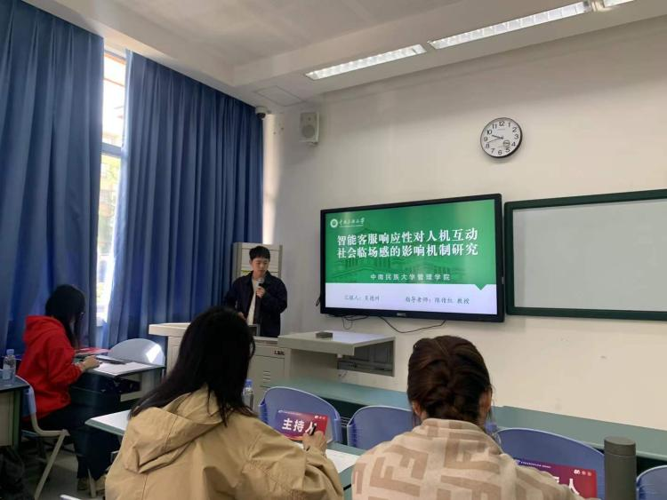团队论文《智能客服响应性对人机互动社会临场感的影响机制研究》(主要由陈传红、吴德州合作完成)入选会议论文。4月13日,吴德州在“个体行为组”平行论坛(A1场次)汇报该研究,围绕智能客服响应性对社会临场感的影响机制展开阐述,与参会者就技术应用中的用户行为问题进行专业交流。