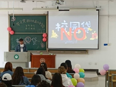 不知道“远离校园贷,青春不还债”的红色标语,是否在你心中留下了一些印象呢?校园贷是一个利用大学生超前消费心理,诱骗在校大学生陷入“套路贷”“高利贷”的陷阱。作为最容易被诱骗的群体,我们要树立社会主义核心价值观,养成“量力而行”的消费观念,不攀比,不从众,提高自控力,抵制诱惑,逐渐对校园贷产生“免疫”,健康快乐地学习。
