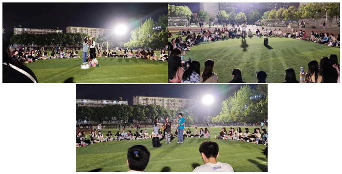 2022年4月10日星期日晚上,管理学院2021级会计硕士在南区操场举办了一场以“封校不封情,‘疫’路相伴行”为主题的班级活动。管理学院副院长周运兰老师和研究生兼职辅导员许芳老师也出席了本次活动,与同学们共享热情快乐的现场气氛。