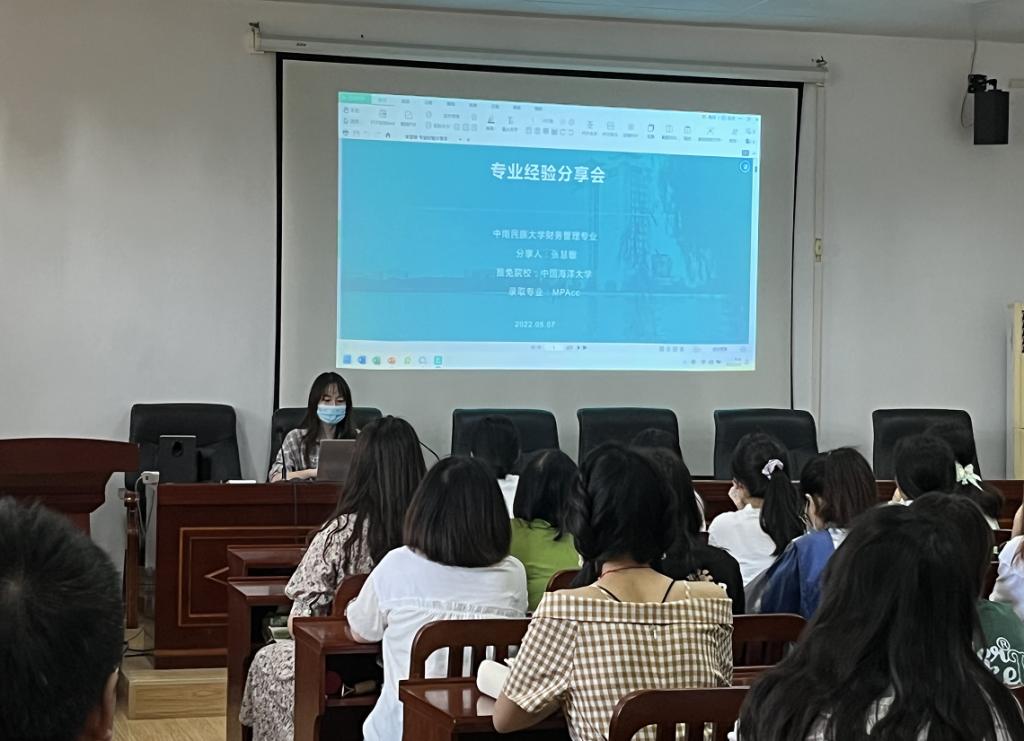 会议伊始,苏亚民老师对财务管理系往年考研录取情况以及今后考研发展趋势进行了详细的介绍,指出考研形势日益严峻,鼓励大家要认真聆听经验,积极复习备考。随后,保研到中国海洋大学的张慧敏同学对自己的保研经历进行了详细的介绍,建议大家在保持高绩点的同时积极参加学科竞赛并尝试加入导师课题组进行科研学习,在夏令营时期要海投简历为自己争取更多的机会。考上湖南大学研究生的王乐霏同学介绍了会计专硕的学习内容,重点介绍了报考少数民族骨干计划的条件。考上云南财经大学研究生的杨展钶同学介绍了经济类联考的考试内容以及在调剂过程中遇到的困难,他认为调剂工作不到最后一刻千万不能放弃,同时感谢专业老师对自己调剂的引导和帮助。考上本校研究生的张丽婷、余长轩2位同学介绍了会计学硕备考过程中各科的学习方法,同时张丽婷强调了尽早开始考研学习的必要性以及保持良好心态的重要性,而余长轩同学认为考研是一个持久战,只要坚持下去就能取得满意的成绩。考上本校研究生的李倩同学重点向大家介绍了自己的备考经历以及考研过程中出现的问题,强调在考研过程中切忌精神内耗,不要半途而废。张梅学姐向大家分享了自己公务员考试过程中的时间安排以及使用过的一些学习资料,强调在行测考试中要有的放失,行测考试时间少而题量大,要争取在有限的考试时间中获得理想的分数。徐嘉怡同学重点介绍了自己的面试经历和面试技巧,她强调简历填写一定要认真,不要出错,要培养面试的随机应变能力。