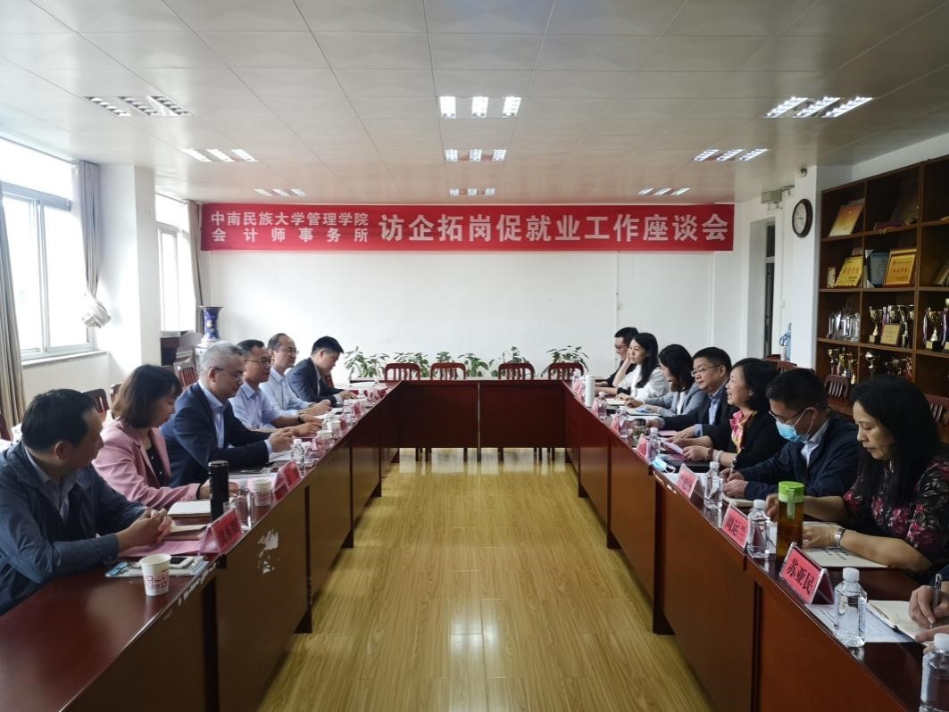 5月19日上午,管理学院邀请武汉烽火与时投资有限公司等5家知名会计师事务所领导来校,参加访企拓岗促就业工作座谈会。校党委常委、总会计师乔俊杰,学院班子成员及相关教研室代表参加座谈。院党委书记邹反修主持会议。