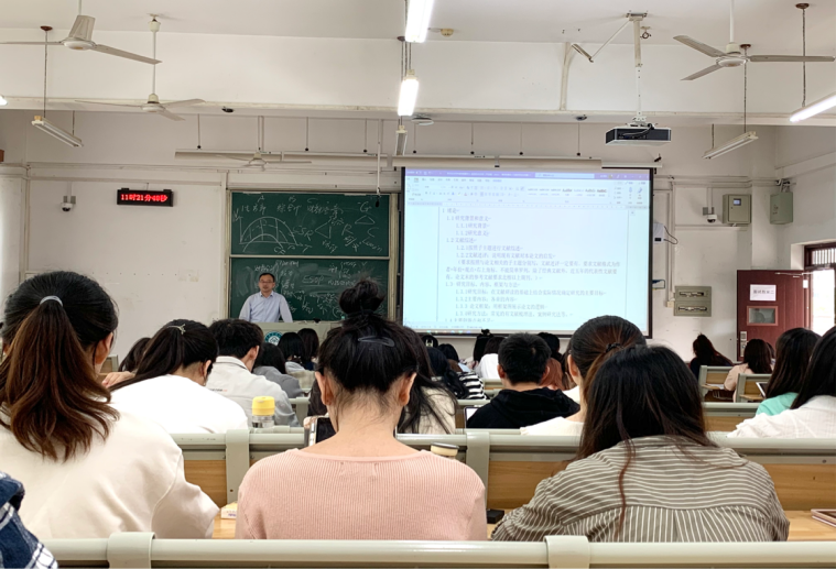 2022年9月25日,我院聘请的湖北省产业教授、企业导师,武汉烽火与时投资有限公司董事长、全国会计领军人才、正高级会计师、全球特许管理会计师赵团结给我院会计专硕MPAcc做讲座。上午10点开始,赵总先给MPAcc研二学生进行论文开题指导,研一学生也积极参与讲座学习。赵老师对学生们的硕士毕业论文选题提供了指导意见和方向建议,并介绍了由确定选题到开题答辩再到论文答辩的流程;同时对学术论文的规范性和整体框架以及文献参考和写作规范等进行了详细讲解。