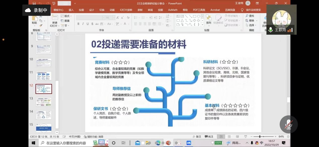 2022年10月30日,注会2201班开展线上保研学生学习经验交流会。本次学习经验交流会邀请了2019级注会班王歆雨、李筱羽两位同学进行分享与交流。