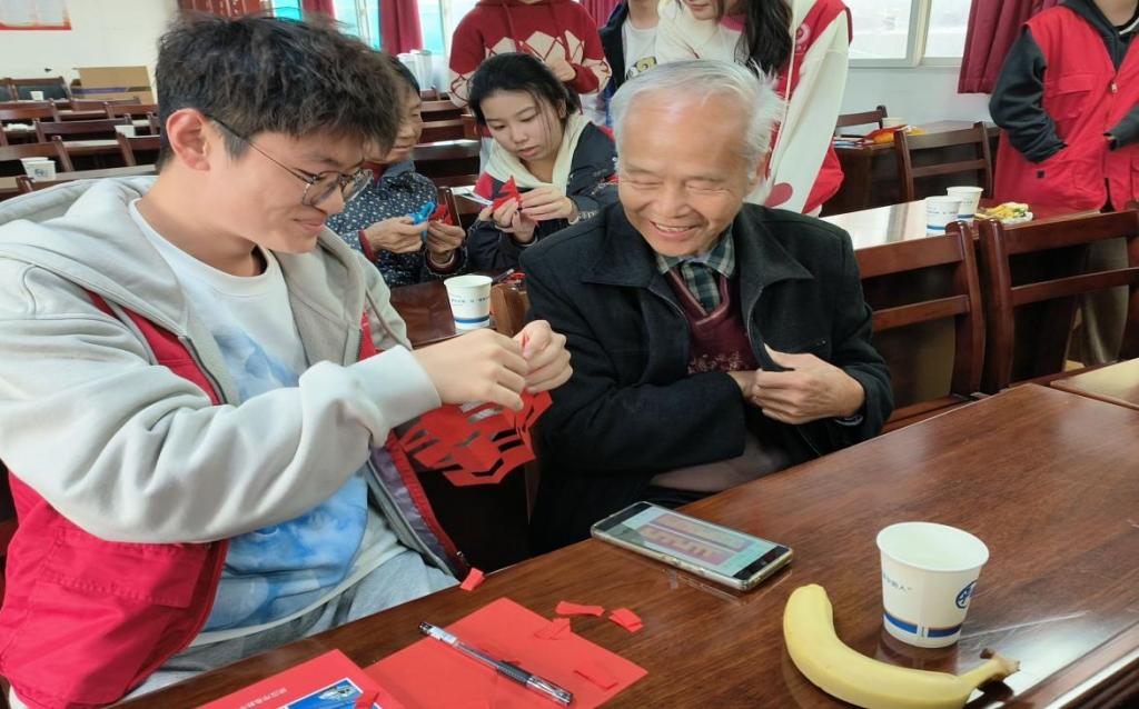 志愿者教老人们剪纸