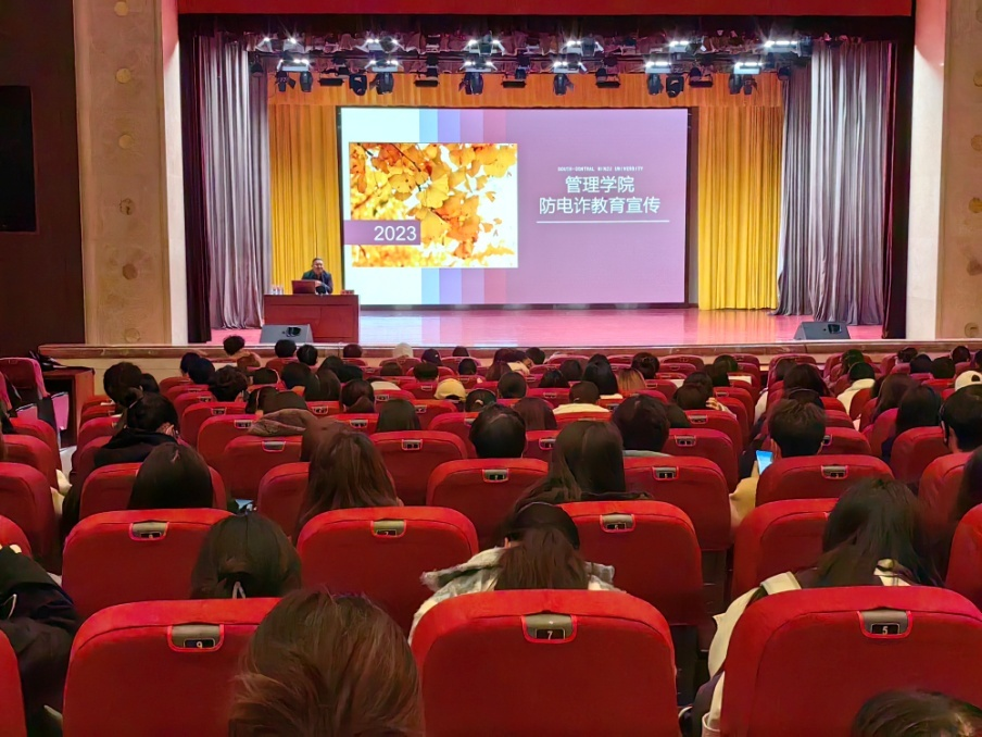 11月29日下午,管理学院在beat365官网学术会堂召开了一场别开生面的防电诈教育专题宣讲会,会议由管理学院2023级辅导员李丹主持,学院党委副书记李明亮宣讲,管理学院2023级全体同学参加。本次会议旨在增强我院同学对电信诈骗的防范意识。