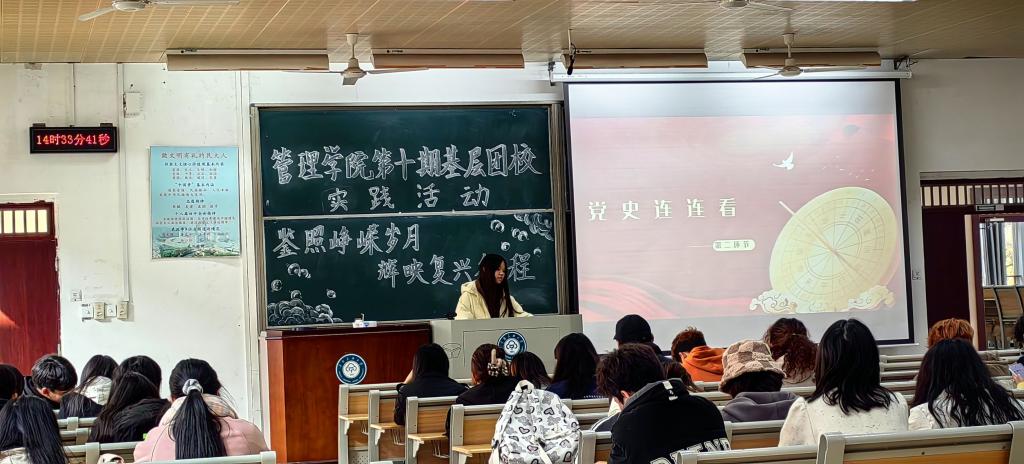 为提高学员政治思想素养,增强学员动手实践能力,引导学员弘扬革命精神、传承红色基因,12月7日下午,管理学院基层团校于11栋200教室开展了主题为“鉴照峥嵘岁月,辉映复兴征程”的实践活动。80余名基层团校学员参加。