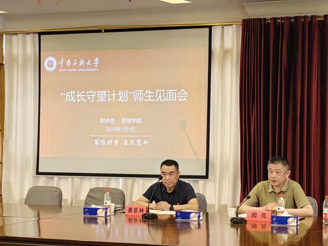 5月9日下午14时30分,管理学院、财务处于学术交流中心3楼第一会议室召开了“成长守望计划”师生见面会。管理学院领导班子、财务处领导班子出席会议,管理学院相关辅导员、财务处“成长守望计划”导师代表及22名学生参加会议。