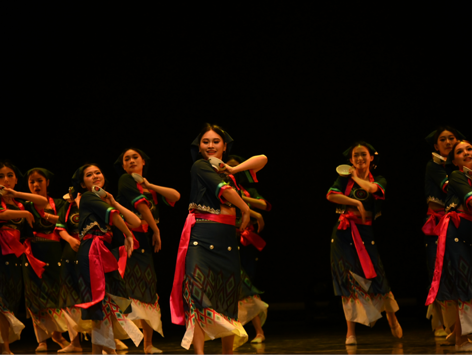 舞台上,管理学院民舞代表队的同学们用精湛的舞技和饱满的热情,为观众带来了一场视觉与情感的双重盛宴。她们以“生生回响”为题,通过舞蹈这一艺术形式,生动地展现了海南黎族儿女勤劳、智慧、团结奋斗的精神风貌,传达了建设美好家园的坚定信念。