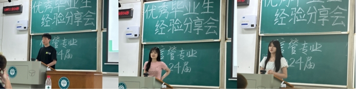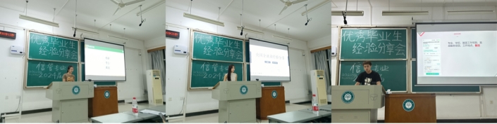 (文字记者:张含森、李煜昊)为了进一步加强学风建设,充分发挥优秀毕业生的典型示范和榜样激励作用,6月12日19点,管理学院信息管理专业于15栋619教室成功举办了2024届优秀毕业生经验分享交流会。本次分享会邀请了10位优秀的20级信管专业毕业生,采用线下线上相结合的方式,分别从保研、考研、就业三个方面进行了经验分享。参加此次活动的有信息管理系杨单、杜文华老师,以及信息管理专业21/22/23级一共近百余名同学。