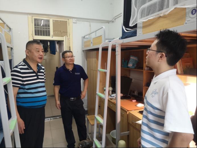 学院党委书记闻亮在走访23栋、游泳馆男生寝室时与新生进行亲切交谈,倾听学生心声,详细了解学生们的生活环境和适应状况,耐心细致解答学生们的各种疑惑,并嘱咐大家要注意宿舍安全问题,共同维护干净整洁的宿舍环境,营造良好的学习、生活氛围。同时鼓励同学们要规律作息、加强锻炼、遵守校规,珍惜大学时光,勇于探索新的知识领域,不断追求卓越。