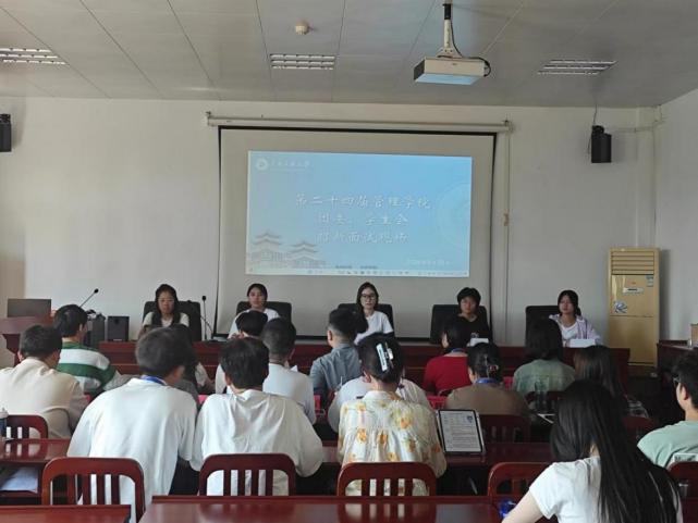 为进一步推进全面从严治团工作,规范学院团委、学生会组织的机构设置、人员配备,推动其优化改革,9月28日8时,管理学院于5栋506会议室举办了第二十四届团委、学生会招新面试会。团委指导老师谢鹏及第二十四届团委、学生会主要工作人员近47人参会,共101名同学参加面试。