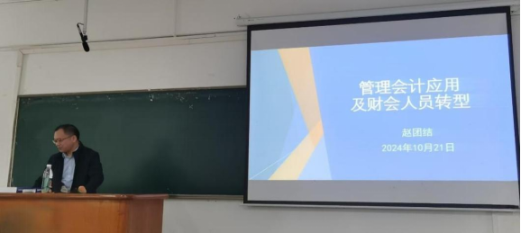 2024年10月21日上午,我院产业教授、企业导师、全国会计领军人才、正高级会计师、湖北与时投资有限公司董事长赵团结老师应我院之邀请,为2024级会计研究生作《管理会计应用及财会人员转型》专题讲座。讲座在学校11号教学楼108教室举行,我院副院长周运兰教授出席并主持。