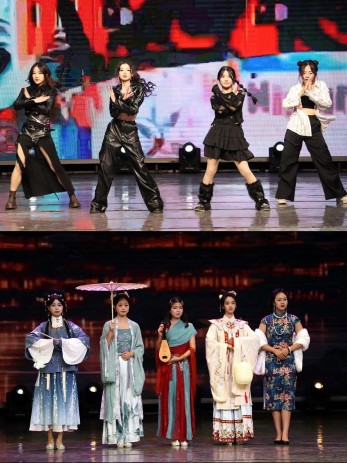各美其美,美美与共。我院不同民族的学生共同带来了许多弘扬中华优秀文化的节目,他们以歌舞为形展中华文化之美,来提升和激发观众的文化自信与民族自豪感,让铸牢中华民族共同体意识这一主线深入人心。舞蹈《象山水拜月》以表演者们曼妙婀娜的身姿,将中华传统文化中的“拜月”娓娓道来。舞蹈《藏风踏舞》,带领观众们沉浸式感受到淳朴好客的风情。模特队带来的走秀《时光穿梭·文物风华》溯源历史,寻脉中华。