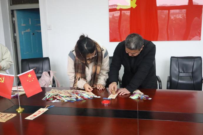 当日中午,工作人员和志愿者们在5栋广场集合,有条不紊地分装礼包,布置活动现场。下午3点半活动开始,为确保现场井然有序,志愿者们分列引导考研学生依编号领取礼包。礼包含学校食堂“上岸”套餐餐券2张、橙子2个、1瓶水以及盖有“折桂”“上岸”“逢考必过”“管理学院”等篆书印章的书签1枚。1瓶水代表“第一名”,2个橙子寓意“考研能成、心想事成”,组合成的数字“100”寓意“考满分”,多枚印章由学院党委副书记李明亮精心雕刻,“上岸”套餐餐券还单独印上了学生的名字及祝福语,寓意学院时刻为考研学子护航。“所有寓意,皆愿考研的学长学姐们在考研之路上一帆风顺!”学院团委学生负责人刘翊昭然介绍道。