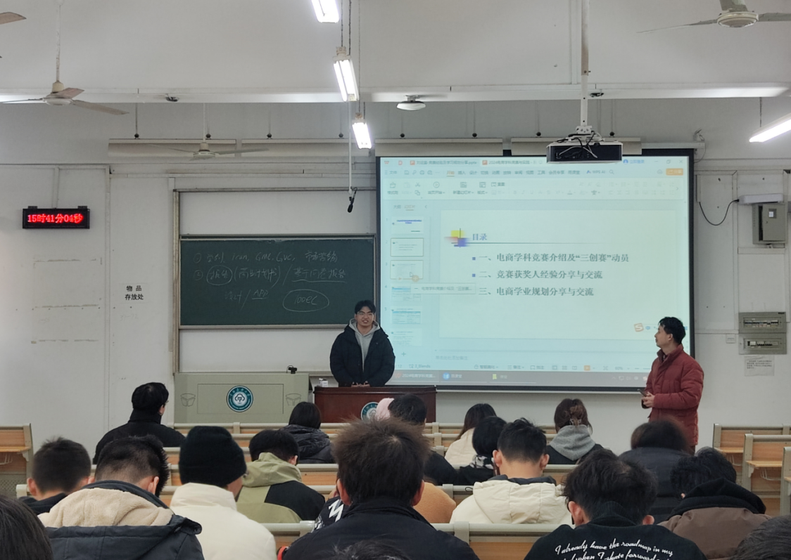为贯彻学校全面育人理念,持续优化专业教育培养模式,促进电子商务专业学生的卓越发展。管理学院电子商务专业于12月20日下午在11栋210教室组织召开了“学科竞赛宣讲交流与商业计划书撰写辅导”专题会。电子商务系别黎主任以及2022级与2023级电商100多名同学参加会议,会议由别黎老师主持。