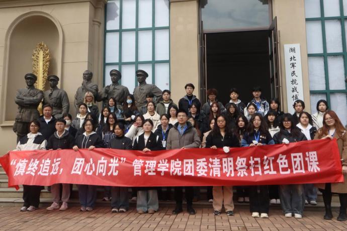活动的尾声,全体师生来到了湖北军民抗战博物馆。师生们通过观看历史图片和文物、聆听英雄事迹讲解,深入了解革命先烈为民族独立和人民解放作出的巨大牺牲。本次活动分别由管理学院团委、团委宣传部和志工部主办、承办和协办,通过精心策划与组织,将祭扫活动与红色教育、主题团课、文化传承紧密结合,引导青年学子在缅怀历史中汲取奋进力量,以实际行动践行“强国有我”的青春誓言。