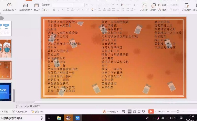 最后,主持人带领同学们表达对共克时艰,武汉必胜的决心,同学们也纷纷送上自己的祝福。