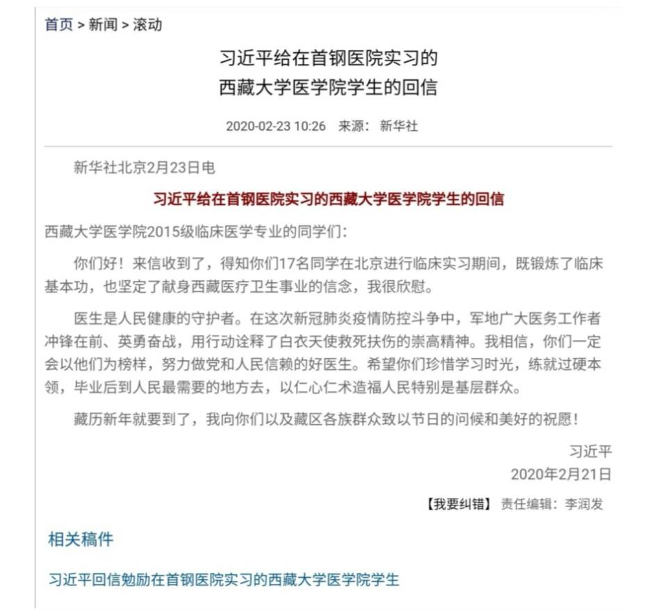 团会第二环节,主持人带领同学们学习习近平总书记给在首钢医院实习的西藏大学医学院学生的重要回信。同学们对回信内容进行了阅读和学习,通过语音和文字积极交流心声,表达对习主席的热爱和对战疫成功的信心,同时表达了对校园生活的急切向往。