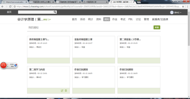 翟华云、张振等老师组建的会计学原理教学团队,在前期已建设的《会计学原理》在线课程基础上,充分利用平台资源,开展讲授、互动讨论、答疑等在线教学。本学期属于在线课程第四期运行,用于管院会计学原理和经院会计学共1000多名学生13个班级的教学。课程前期已做好所有授课老师分工,上传了教学日历、教学大纲、教案、教学课件、教学视频、教学重难点指导、教学案例等教学资料。授课过程中配合作业、测试、讨论、教材、习题等方式,跟踪学生掌握情况。