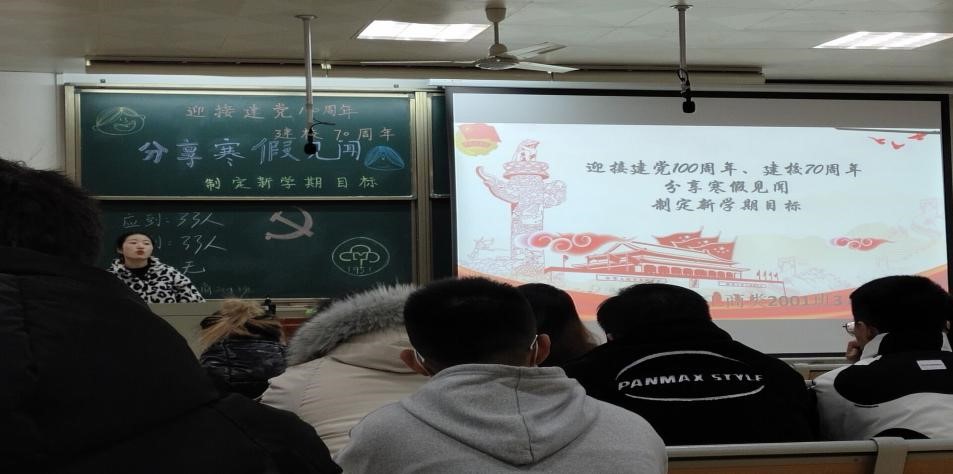 (文字记者:马翔)2021年3月7日晚, 2020级工商管理大类12个班级在15栋教学楼在召开了主题为“喜迎建党一百周年、建校70周年、新学期树立明确学习计划、分享寒假期间家中趣事”的班会。