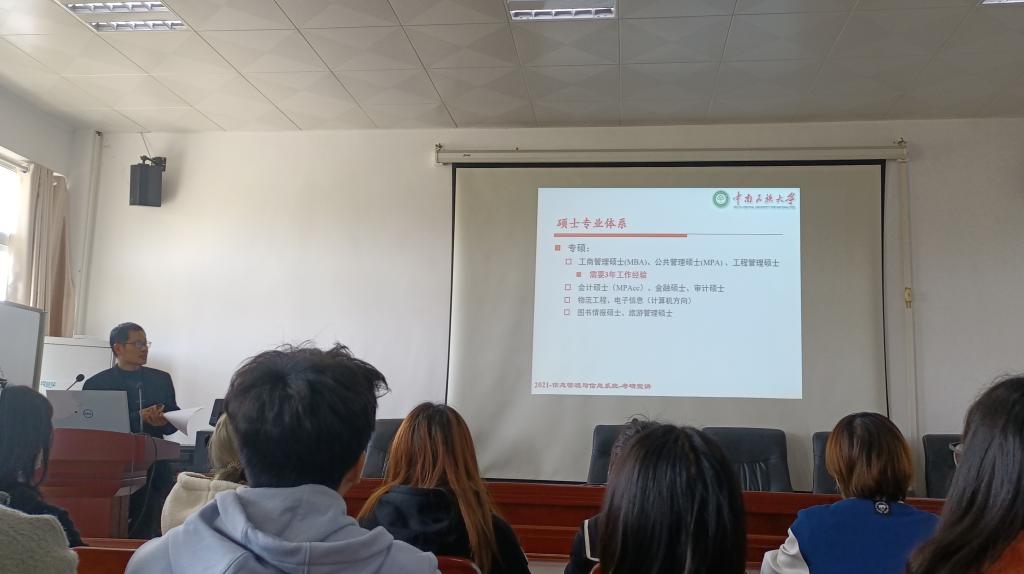 (文字记者:柳逸渊)为进一步做好大三学生考研就业指导工作,2021年3月24日下午,信息管理系召开了18级信管专业和大数据实验班考研就业动员会。管理学院院长张劲松、信息管理系主任杨单以及18级信管专业和大数据实验班全体同学参加会议。会议由杨单老师主持。