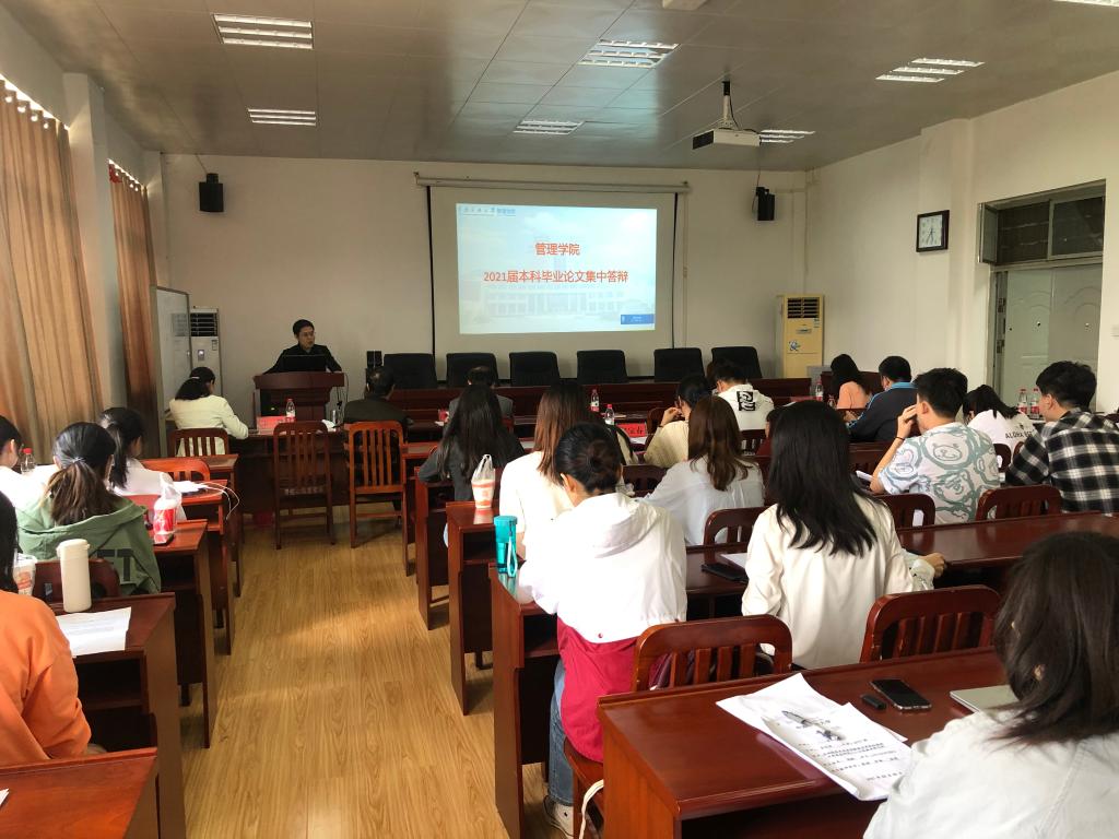 管理学院2021届本科毕业论文集中答辩于5月17日在5号楼506会议室进行。本次答辩小组由九名专家组成,各专业共30名同学进行答辩。会议开始,教学副院长李超锋进行了发言,介绍了各位答辩委员以及答辩流程,对同学们的答辩内容提出了要求。