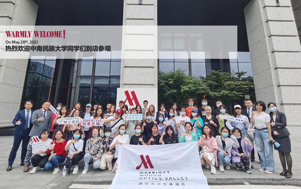 2021年5月28日,2018级旅游管理专业在李东娟老师带领下前往光谷万豪酒店开展实习实践活动。此次活动得到了光谷万豪酒店高层的极大重视,活动精心策划,内容丰富。活动分为两大部分,第一部分是酒店宣讲。首先由酒店总经理陈文峰先生致欢迎词并跟同学们分享个人的成长故事;再由酒店人资李方方总监介绍万豪品牌在国际和中国市场的发展情况。宣讲活动还穿插了有奖提问环节,我们的同学踊跃发言,能够很好地将课堂知识运用于实践之中,同学们的表现也得到了酒店方的高度赞扬。第二部分参观酒店。由酒店人力资源的同事带同学们参观了行政酒廊,行政套房,会议厅,健身房,餐厅,酒店后台部门等多个区域。酒店同事一边带大家参观,一边为同学们详细讲解,给同学们上了一堂生动的校外实训课。