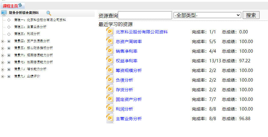 线上实习通过操作实训软件开展,历时3周,先后完成了厦门科云财务分析综合实训和厦门网中网财务管理综合实训。