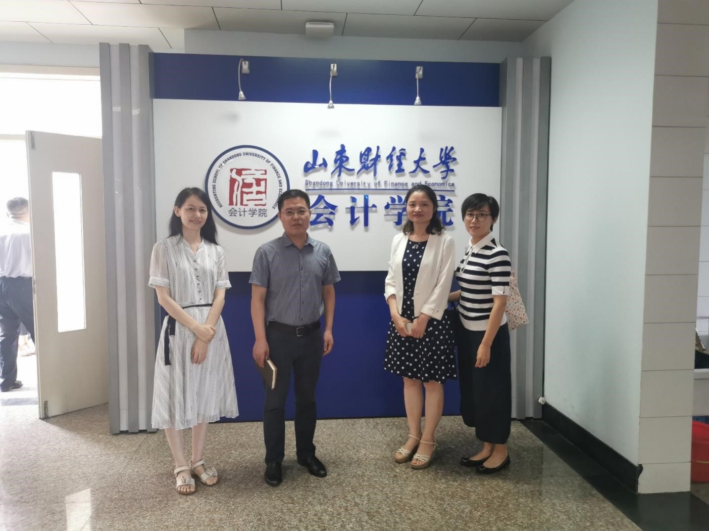 首先,翟华云副院长与李超锋副院长带领会计系教师在山东财经大学深入学习了智能会计班建设的实践经验。山东财经大学智能会计班已经开设两年,撰写了5本智能会计方向的教材,在全国高校智能会计学专业建设中走在前列。山东财经大学管理学院院长王爱国教授首先介绍了智能会计发展的方向与专业建设思路。山东财经大学管理学院会计信息化系主任牛艳芳教授系统介绍了山东财经大学智能会计实验班建设经验与培养方案等。会后翟华云副院长、李超锋副院长、王爱国院长和牛艳芳教授进行了深入的交流,获取了较为深入的专业建设意见。会计系主任刘华老师和会计系刘晓霞老师与山东财经大学会计信息化系教师也进行了深入交流,在课程建设与学生培养等方面都收获了启发性较大的建设意见。