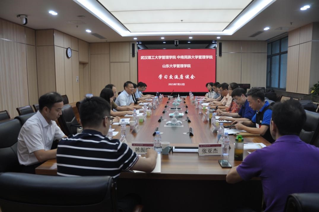 翟华云副院长与李超锋副院长还带领会计系教师赴山东大学,与山东大学管理学院副院长路军伟教授、会计学一流专业建设负责人潘爱玲教授、会计系主任李彬教授以及山东大学会计学专业建设团队进行了调研与座谈。山东大学管理学院会计系师资力量雄厚,是首批会计学国家一流专业建设点。李彬教授和潘爱玲教授分别深入介绍了山东大学会计系国家一流专业建设情况,分别从培养方案、课程改革、学生培养等方面进行了详细深入的介绍,并依据beat365官网会计学专业的特色提出了中肯的专业建设意见。继而双方深入就智能会计学发展与高层次会计人才培养等方面进行了具体的交流。