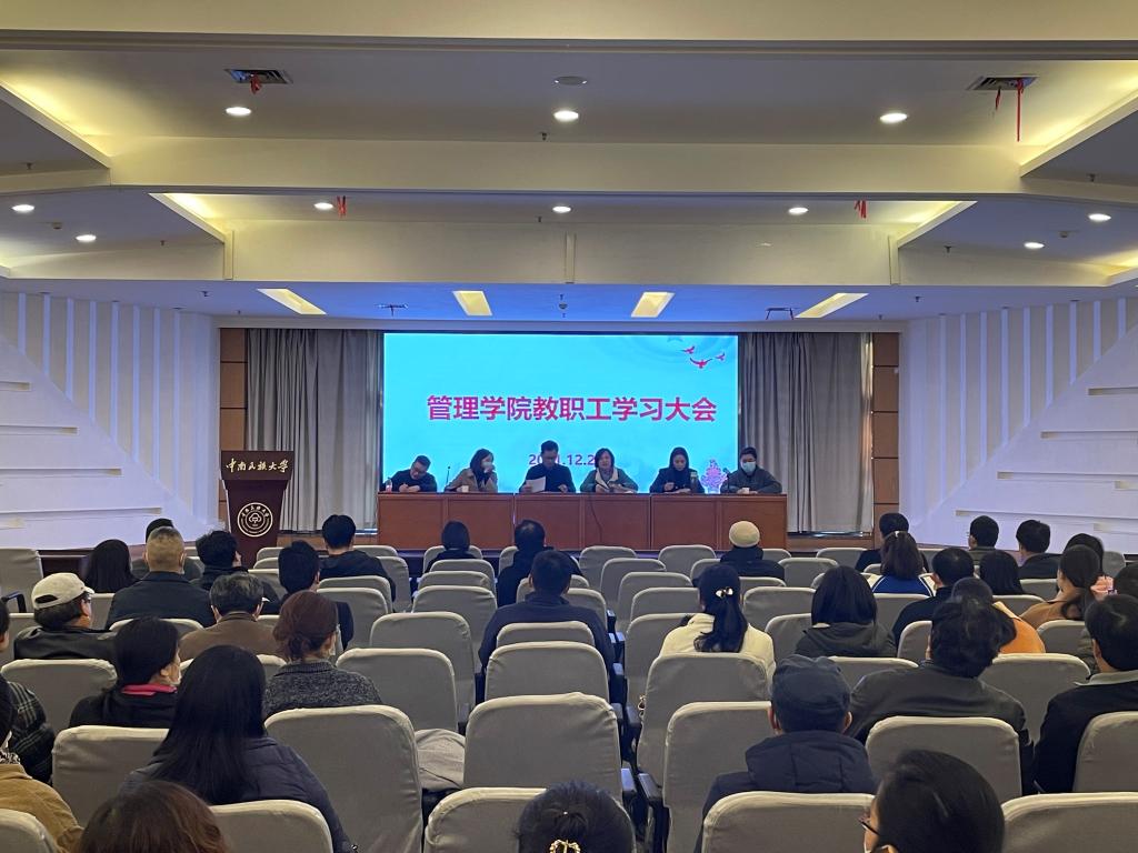 2021123日下午,管理学院召开全体教职工大会深入学习国家民委直属高校工作座谈会会议精神。