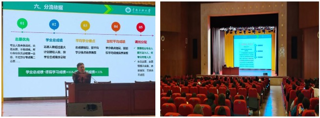 会上,李超锋首先解读了专业志愿填报的重要性,他向同学们讲解了学院的专业分流政策与分流计划,明确了每个专业的招收人数。随后,他进一步说明了分流依据和分流流程,用简洁明了的语言和图例进行讲解,使同学们对日后专业志愿的填报步骤有所了解。最后,他向2022级学生提出了几点建议,一是广泛了解,加强沟通;二是审视自我,尊重兴趣;三是认真对待,慎重选择。
