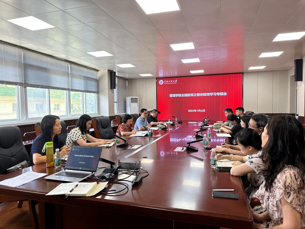 2023年7月6日,为落实国家民委党组和学校党委的工作会议精神,管理学院党委结合学习贯彻习近平新时代中国特色社会主义思想主题教育在206会议室召开警示教育专题会议,学院全体领导班子、教研室主任和教师支部书记参加,会议由党委书记邹反修主持。