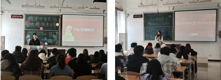习近平总书记指出,民族团结是我国各族人民的生命线,中华民族共同体意识是民族团结之本。为进一步铸牢管院学子的中华民族共同体意识,同时提高我院入党积极分子的理论水平,我院学工办组织部分入党积极分子成立宣讲团,以“铸牢中华民族共同体意识”为主题,以故事为载体,利用班团会契机,在大一、大二各班级进行了全覆盖、沉浸式演讲活动。