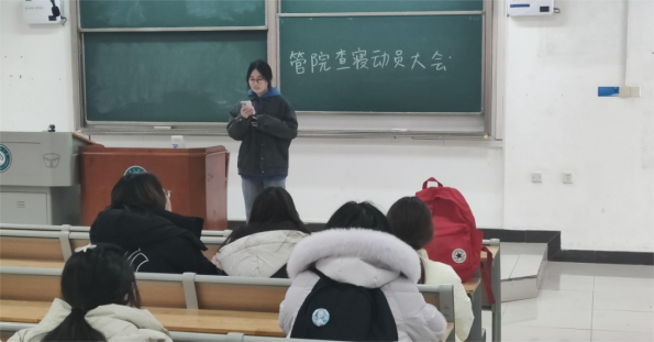 动员查寝志愿者环节,屈璟总结汇报了志愿者查寝工作的相关经验和做法,反思了上学年工作的不足,并重新明晰了查寝志愿者的岗位职责与工作内容,具体安排了本学年的查寝任务。