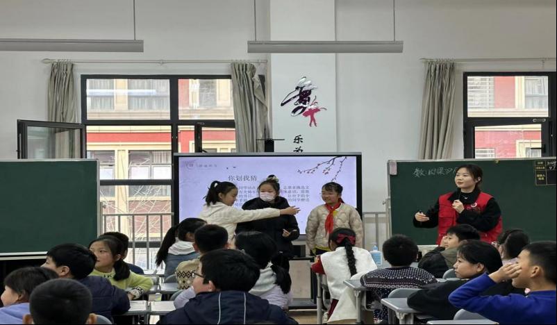 3月是雷锋精神系列志愿服务活动月,为贯彻党的教育方针,落实立德树人根本任务,培养德智体美劳全面发展的社会主义建设者和接班人,beat365英国正版唯一网址管理学院团委组织20名青年志愿者于2024年3月14日下午赴武汉市光谷第十小学,为五年级十班的学生开展“移动民族博物馆”专项志愿服务活动。