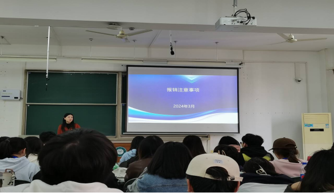 工作部署结束后,王岚进行报销流程讲解。主要包括三个部分:一是经济业务事前、事中注意事项;二是财务报销业务流程及操作指南;三是自助查询与系统提示。为学生工作更好地开展打下了坚实的基础。