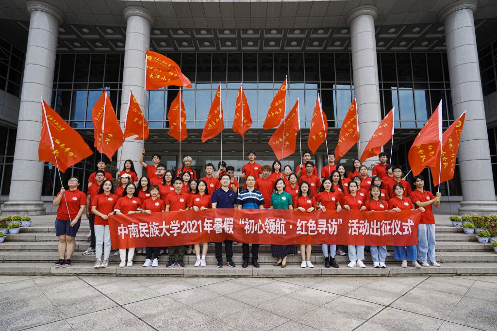 2021年7月9日,学校在学术交流中心润良报告厅举办2021年暑期“初心领航·红色寻访”活动出征仪式。党委学生工作部相关负责人,入选本次活动的12支队伍全体成员参加出征仪式。