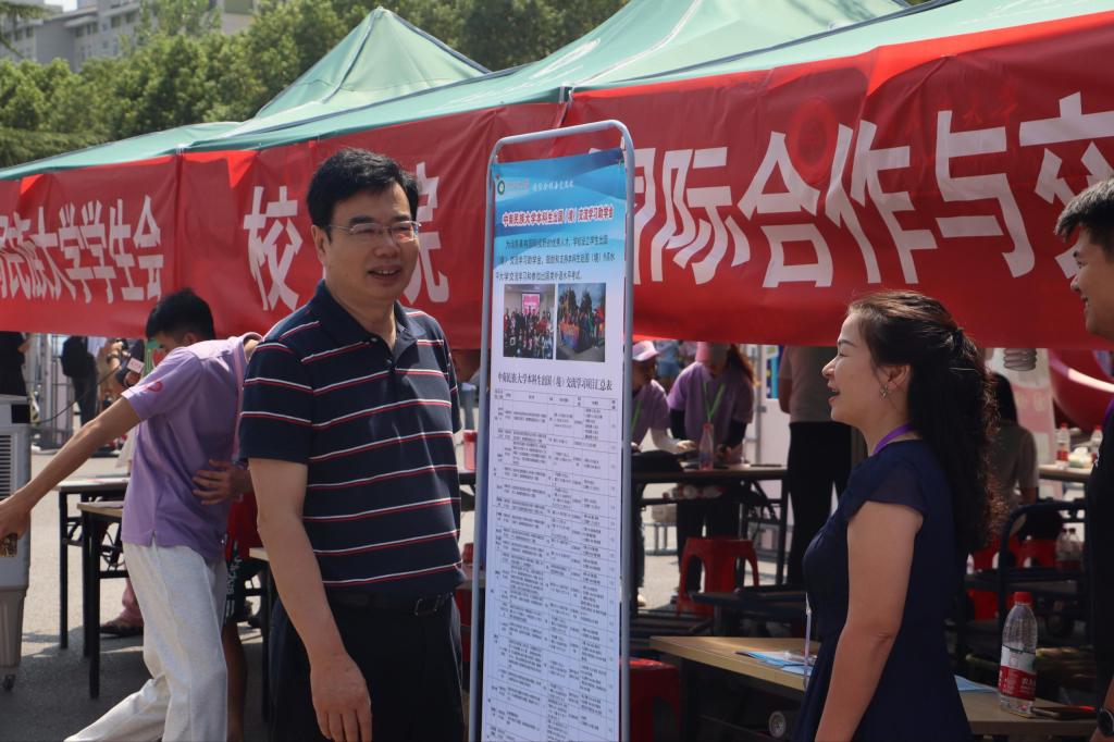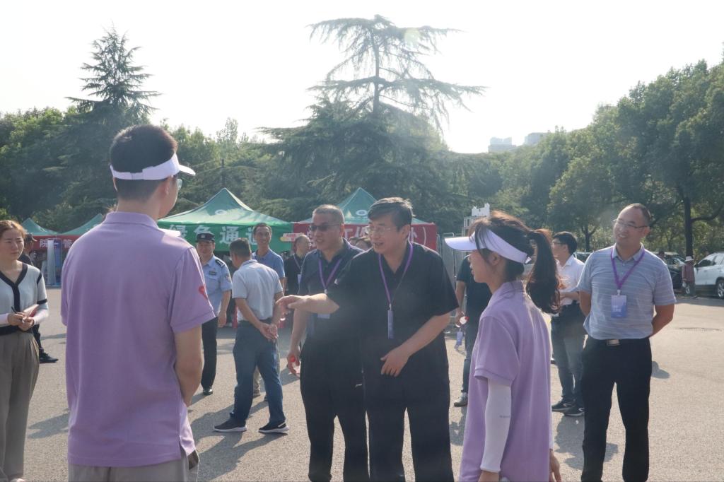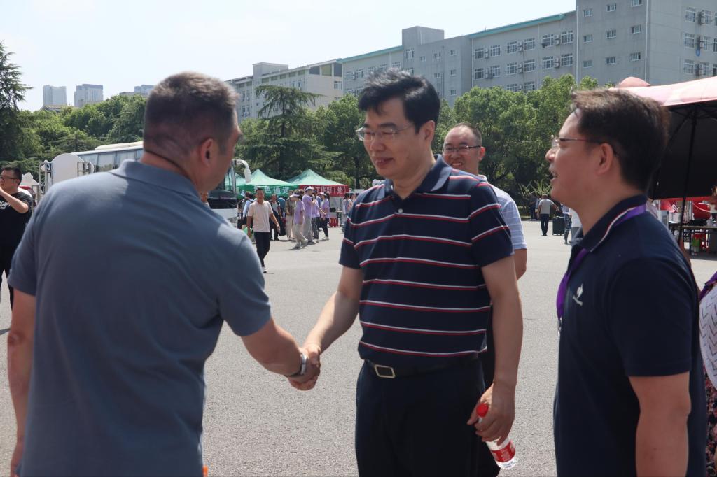 9月7日上午,校领导边境、李金林、杜冬云、宋发军来到迎新总站,迎接新生及家长,看望慰问工作人员和学生志愿者。校领导走访了迎新总站各院系的迎新报到点及校园防电诈宣传点,了解实时报到数据,询问入学前安全教育开展情况。每到一处,校领导都热情地与新生及家长交流,询问他们来自哪里、坐了多长时间车、食堂饭菜口味是否习惯等,并鼓励新同学认真学习、努力奋斗,还要求现场工作人员为新生及家长提供优质服务,及时解决新生的困难。