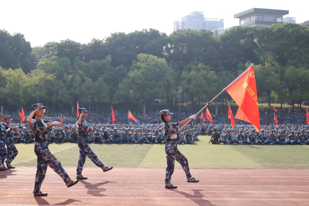 发言完毕后,校长李金林向军训团赠送军训纪念锦旗。大会在全体起立奏唱校歌中圆满结束。