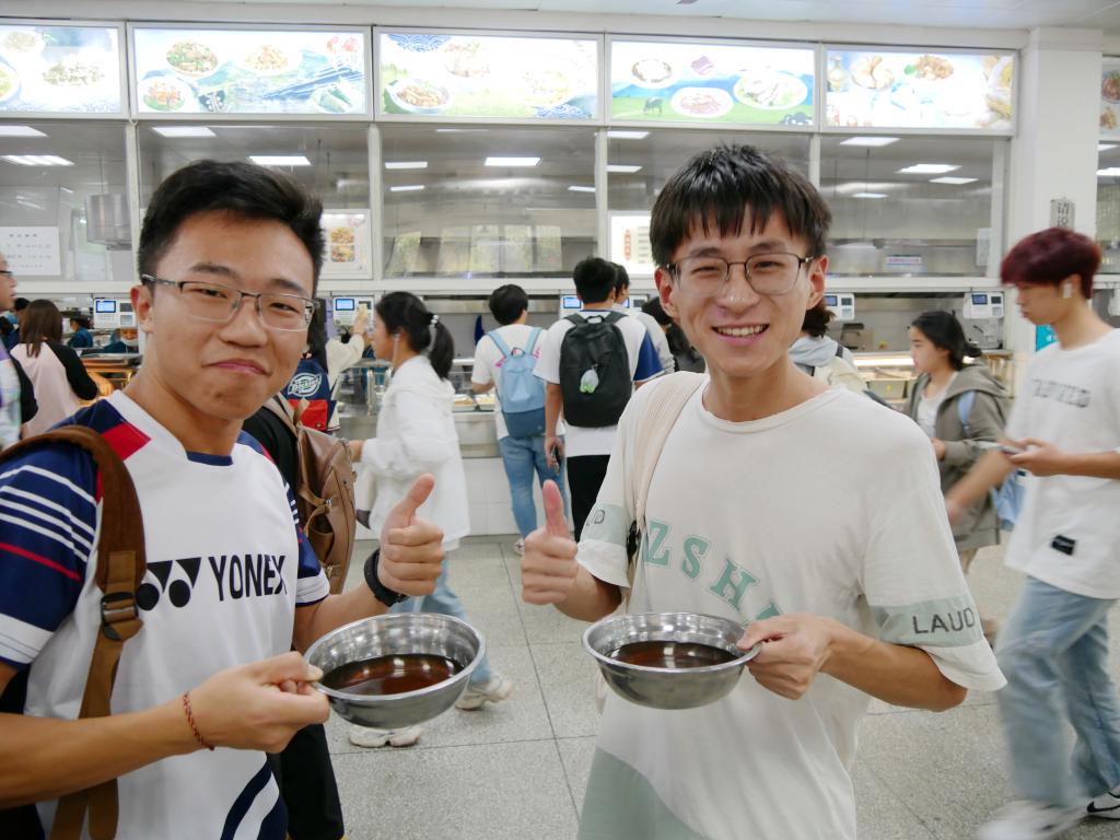 中午11时左右,学工部老师们统一佩戴党徽,来到学生较为集中的第一、二、三食堂和清真食堂,配合校医院和后保处教职工,为来到食堂就餐的学生主动提供校医院特别调制的中药汤剂。对于坐在离发放点较远的同学们,学工部老师逐一将汤剂端到学生桌上,受到了学生们的一致好评。