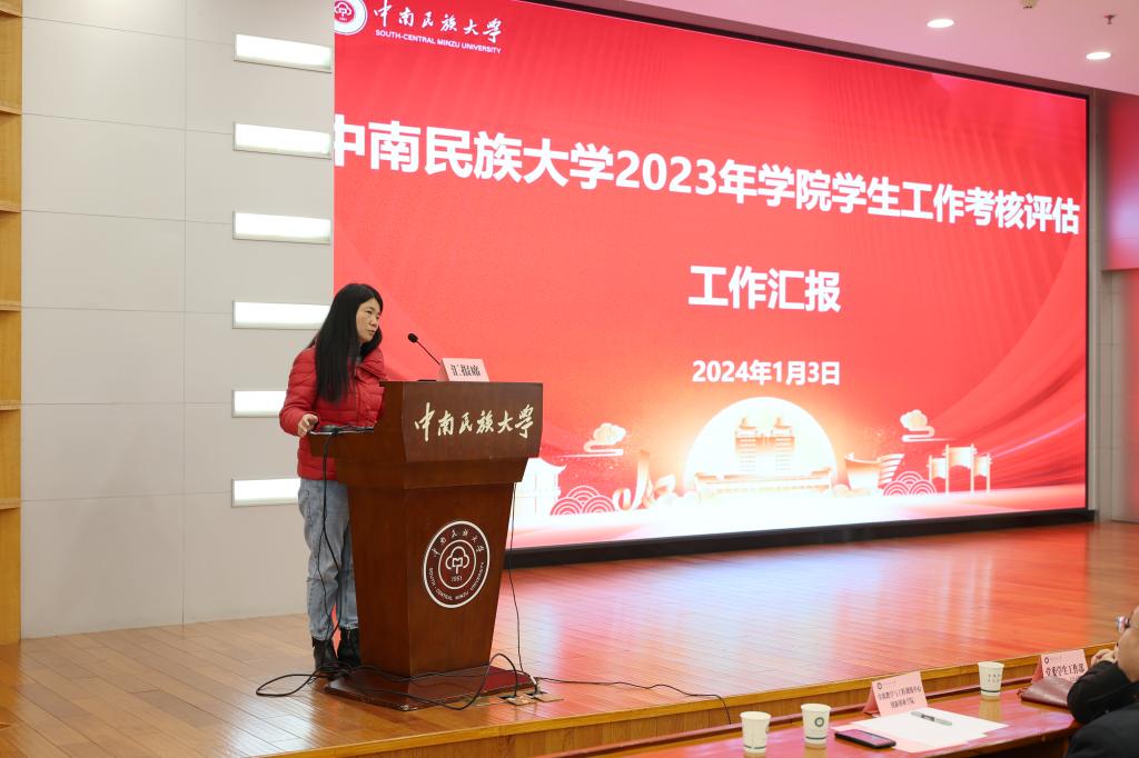 在精彩纷呈的汇报环节后,李红燕代表学校党委,对本次学生工作考核评估会进行总结。她指出,本次考核评估会一是锻炼了二级学院学生工作负责人这支年轻的队伍;二是为全校辅导员提供了良好的学习机会和素质提升平台;三是对2023年学生工作进行了细致而全面的总结;四是借此机会谋划新的一年学生工作,构建思想政治教育和“三全育人”工作大格局。