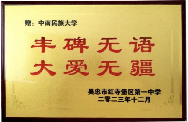 吴忠市红寺堡区第一中学的感谢牌匾。