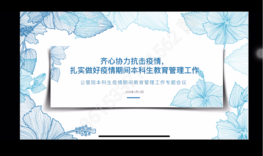 为进一步落实好新冠肺炎疫情防控期间学生的教育管理工作,特别是做好疫情期间2020届毕业生毕业就业工作,3月19日下午15:00点,公共管理学院通过腾讯会议软件召开以“齐心协力抗击疫情,扎实做好疫情期间本科生教育管理工作”为主题的视频会议。学院党委书记陈昌华、院长吴开松、副院长彭庆军、饶映雪、学院各系主任老师、各年级辅导员、教学秘书参加会议,会议由学院党委副书记李金主持。