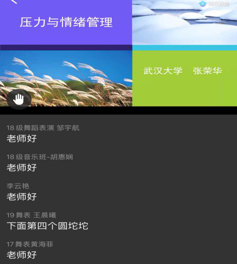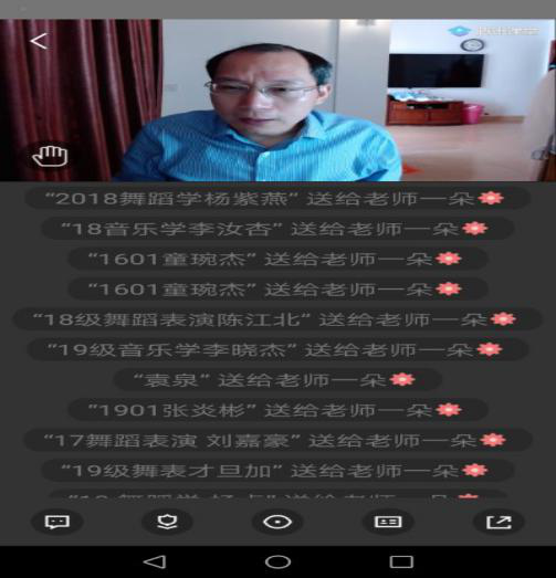 张荣华老师在线讲座直播过程。 音乐舞蹈学院供图 本次讲座近2个小时,主要内容分为以下三个部分:一、压力与情绪的产生机制;二、疫情下人们的情绪反应;三、压力与情绪管理的方法。张荣华副教授通过理论阐述和案例分析与运用两种形式进行讲授,并在讲座结束后进行了半小时的提问环节,将同学们所提的问题做出了详细的说明和应对相应问题的解决方法。 在本次线上主题讲座中,张荣华副教授为全院老师学生在疫情期间所产生的心理问题做出了全方位的解答,有利于缓解心理压力,提高情绪管理能力,解决自身以及家人所遇到的心理问题。讲座开展期间,学院领导老师学生积极参与,积极互动,大家对疫情防控工作都非常重视。疫情不仅是一场身体与病毒的战争,更是一场心理与病毒的战争。疫情来临,不要害怕,我们坚信中国一定会打赢这场阻击战! 疫情就是命令,防控就是责任!音乐舞蹈学院按照上级工作部署安排,做到停课不停工,停课不停教,停课不停学;通过QQ群,微信群,学习通等云平台进行教学工作,确保疫情期间学院工作和学习顺利开展,同时也通过学校网站,微信公众号等新媒体平台做好疫情防控的宣传教育。学院充分发挥专业优势,鼓励学生们在家里通过唱歌、做操、跳舞等方式放松身心,强身健体,共同抗击疫情。 众志成城,万众一心,弘扬主旋律,激发正能量,音乐舞蹈学院将继续贯彻落实学校党委要求,以实际行动践行初心使命,坚决共同打赢这场疫情防控阻击战! (来源:音乐舞蹈学院 编辑:梁潇潇) invisible invisible