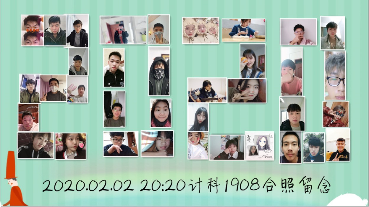班会的最后展示了一张有特殊意义的照片,这是2020年2月2日20:20全班同学拍摄的一张纪念照片,用来记录这个千年难遇的时刻。同学们希望用自己的笑脸来传递信心,为2020留下美好的回忆,展示了计算机1908班全体同学对于战胜疫情乐观向上的精神面貌。