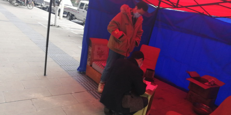 杨才郎吉同学和志愿者们在值班点驻守。 正直寒冬,海北夜间的温度有零下二三十度,杨才郎吉和其他志愿者一起,在进村路口志愿站岗,一站就是十几天。每天从早八点到晚八点,晚八点到次日早八点,杨才郎吉和志愿者们通过倒班值班,对进出车辆进行劝返,并宣传防疫常识。“虽然温度很冷,但是大家的心都是暖的。”杨才郎吉这样说,“尽管我不在武汉,但是能为防疫工作贡献自己的一份力量,我感到荣幸和自豪”。值得一提的是,杨才郎吉的姐姐也是一名大学生,寒假回家后和杨才郎吉一起投入到一线防疫工作当中。 海铭轩:在平凡的岗位完成不平凡的事 海铭轩,管理学院2019级工商管理类专业学生,同时也是工商管理1909班班长,家在平顶山市宝丰县。这个寒假,对于很多人来说都是不平凡的,对于海铭轩也是。原本计划好寒假返家之后进行社会实践活动的他,听到武汉疫情爆发的消息后,最先关注的是和他一样已经陆续回到家乡的同学。在14天隔离期内,他每天通过QQ、电话等方式和本班同学保持联系,询问每位同学的身体情况,对因疫情产生不良情绪的同学及时开导。14天隔离期过后,更是主动联系家里所在社区,参与志愿活动。
